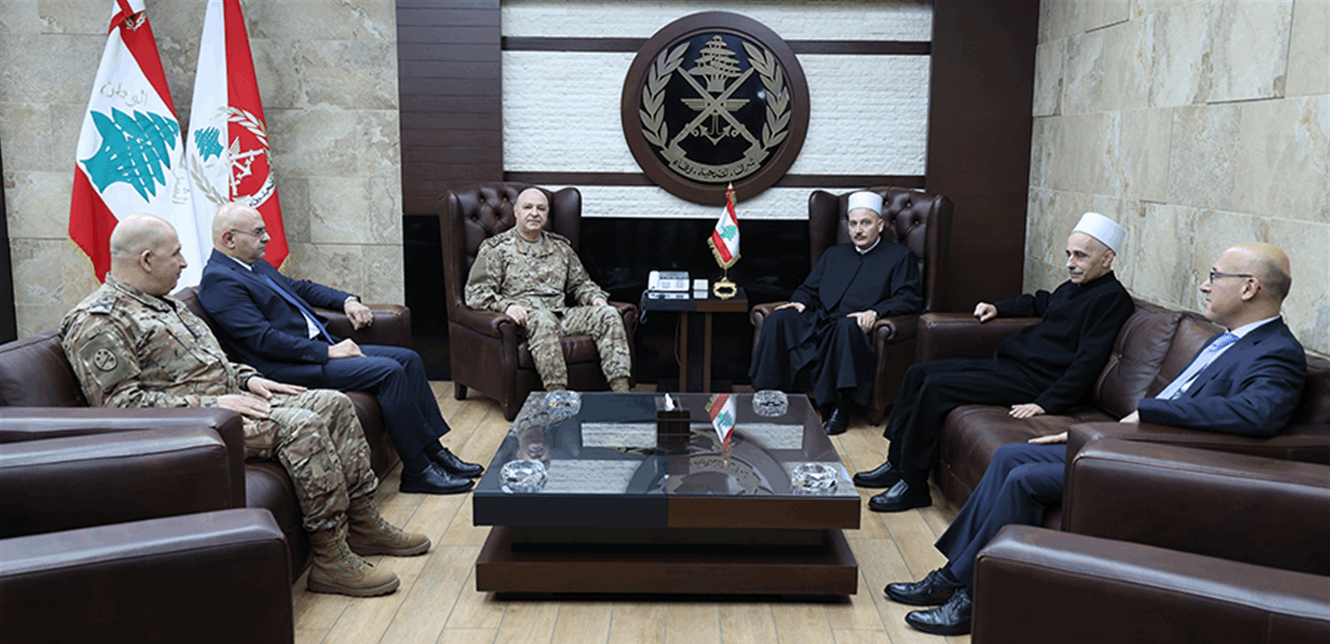 التقى قائد الجيش العماد جوزاف عون، اليوم الاربعاء في مكتبه، في اليرزة، القاضي الشيخ غاندي مكارم، على رأس وفد من مشيخة العقل لطائفة الموحدين الدروز ممثلا شيخ العقل الدكتور سامي أبو المنى.