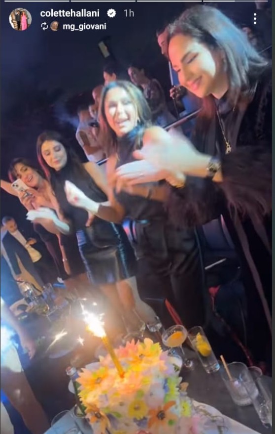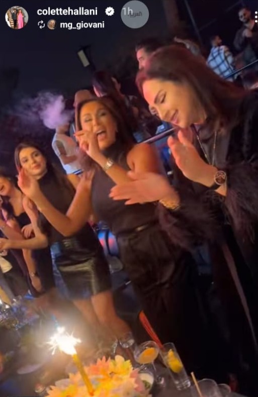 وأطلت كوليت في الفيديوهات برفقة ابنتها ماريتا وهي تحتفل بعيد صديقتها خلال حفل أحياه ابنها الوليد الحلاني في دبي.