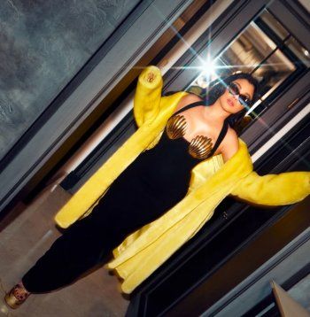 وأكملت هيفا إطلالتها بمعطف فرو أصفر ضخم، أضاف جرأة وحيوية على المظهر، بالإضافة إلى نظارة شمسية سوداء من تصميم ياسمين ثروت، وصندل ذهبي بتفاصيل ملفتة من علامة Raisa Vanessa، جاء بأربطة تلف الكاحل وبكعب عريض.