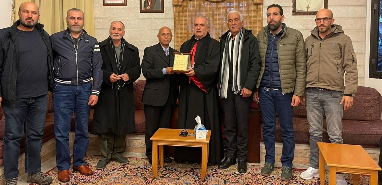 وفي الختام قدم امين سر الاتحاد مرحب حميه ورئيس الاتحاد محمد جعفر درع الوحدة الوطنية للمطران رحمه الذي بدوره شكر أعضاء الاتحاد على زيارتهم لدار المطرانية.