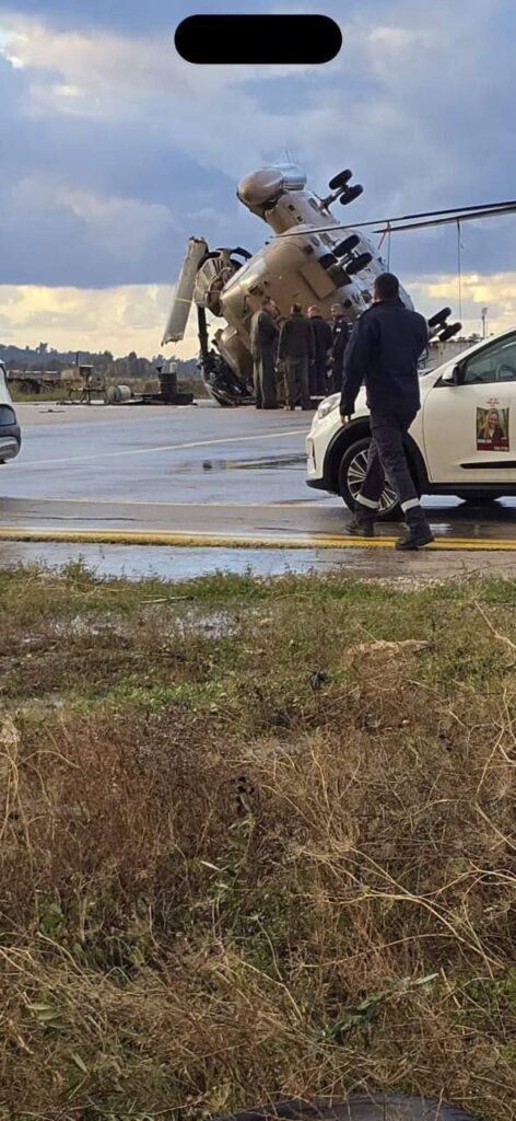 ذكرت وسائل إعلام عبرية أن جيش الاحتلال الإسرائيلي قال إن مروحية من طراز CH-53 تابعة لسلاح الجو الإسرائيلي انقلبت بسبب الرياح حيث تضررت المروحية في الحادث، وستخضع للإصلاح قبل العودة إلى الخدمة.