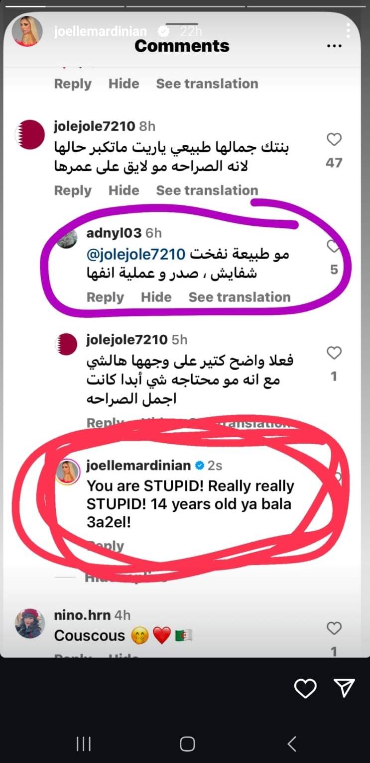 ردّت خبيرة التجميل جويل مردينيان على أحد متابعيها، بعدما اتّهم ابنتها بإجراء عمليّات تجميل.