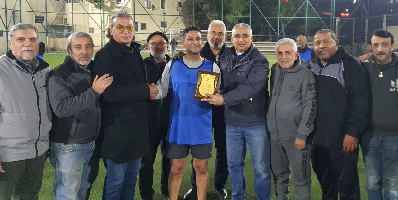 بعد ذلك تم تقديم درع تقديرية الى الكابتن عزام زيتون عربون وفاء وتقدير، ثم جرت مباراة بين اللاعبين القدامى.