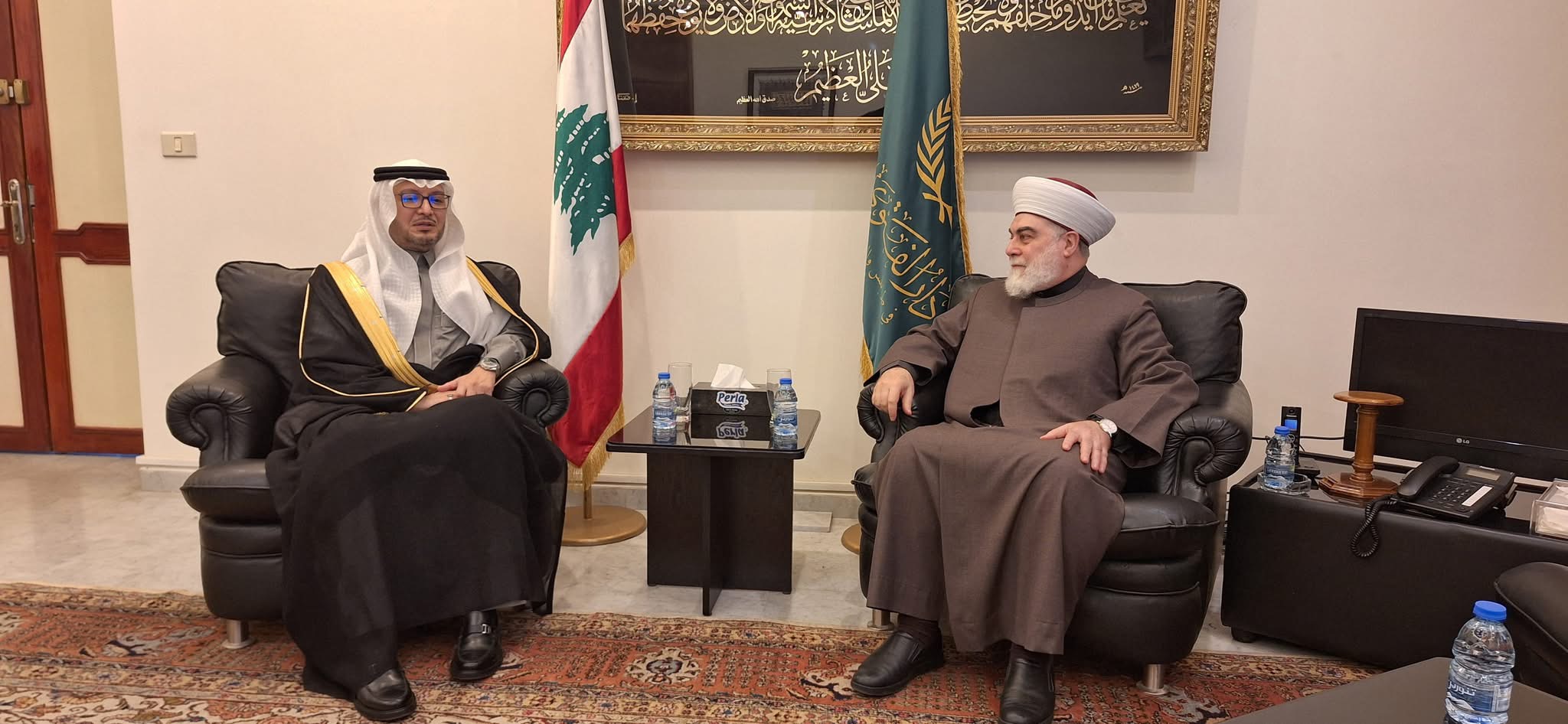 وشكر المفتي امام المملكة العربية السعودية على دورها وجهودها في اطار اللجنة الخماسية وأعرب عن تقديره لمعاليه ونشاطه المميز في العمل الدبلوماسي واهتمام المملكة وسعيها الدؤوب لما فيه المصلحة اللبنانية والشعب اللبناني.
