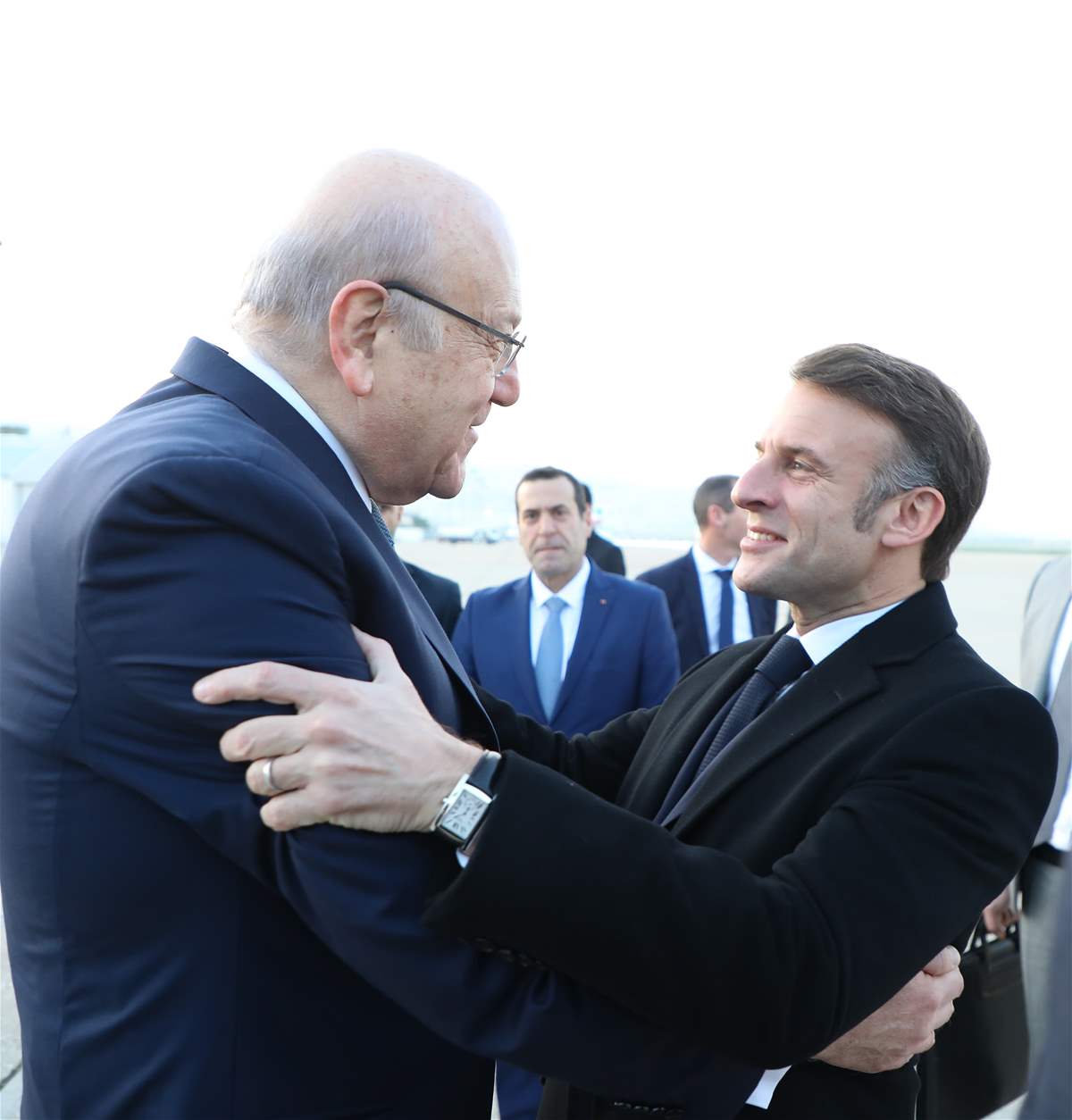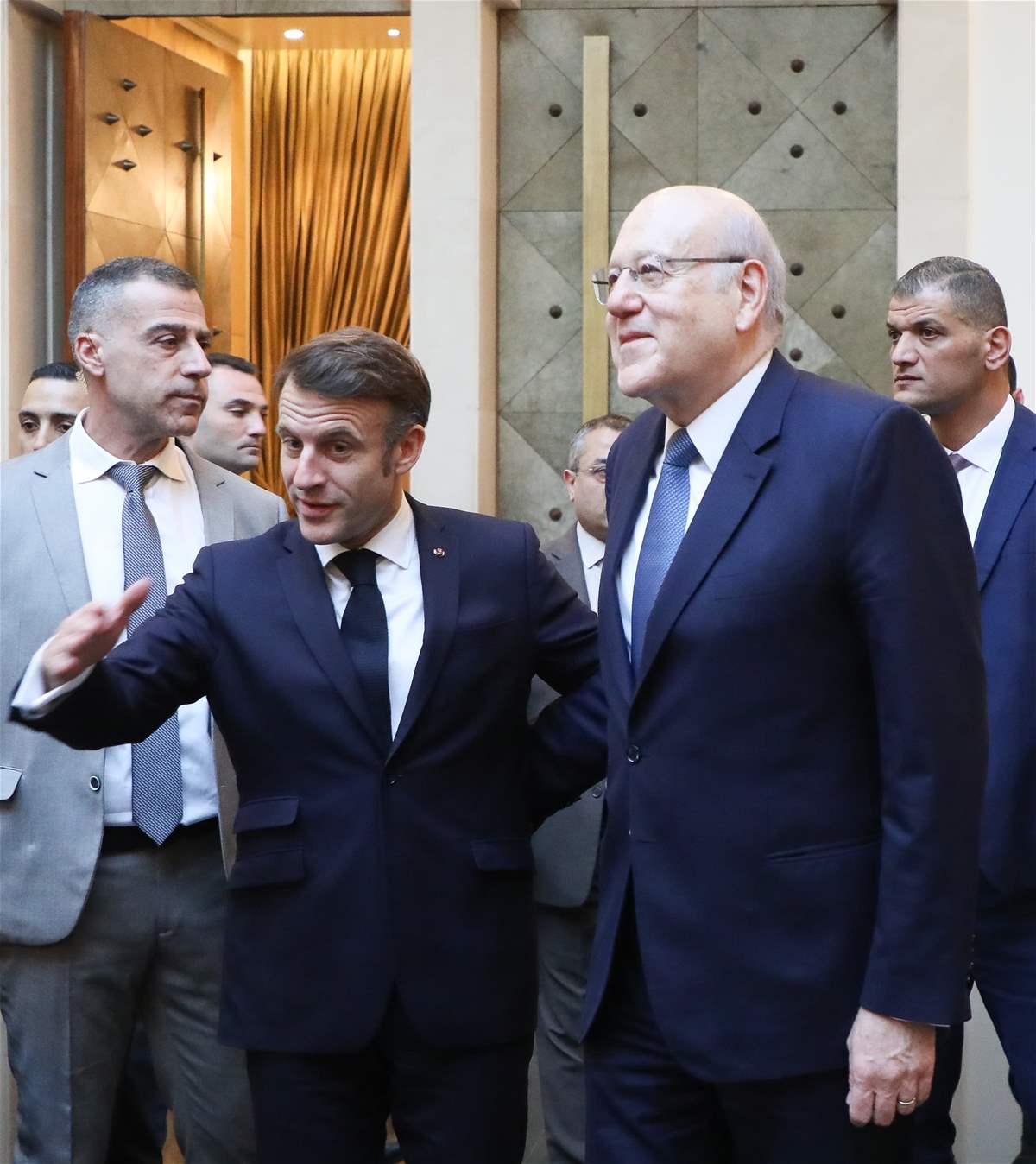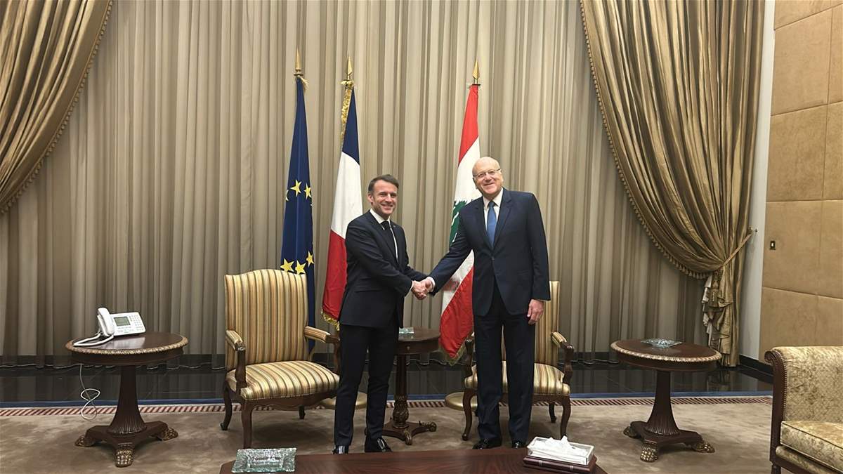 وقال الرئيس ميقاتي: تشرفت هذا الصباح باستقبال الرئيس ايمانويل ماكرون في لبنان. وبعد الاستقبال جرى اجتماع بيني وبين فخامته وتحدثنا عن الاوضاع الراهنة وضرورة المتابعة لدعم لبنان على الصعد كافة، لا سيما اقتصاديا وفي مجال اعادة الاعمار. كما تحدثنا عن التحديات الراهنة، وكان الرئيس ماكرون متفهما جدا للاوضاع اللبنانية، واعدا بمتابعة العمل والدعم للحكومة الجديدة.