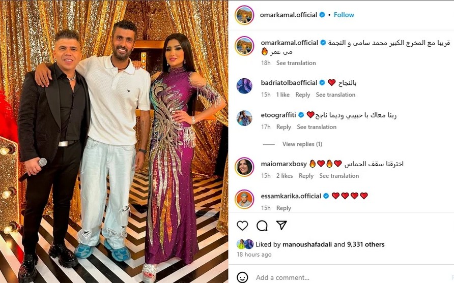 وظهر عمر في الصورة مع مي عمر وزوجها المخرج محمد سامي، وظهرت الأخيرة وهي ترتدي بدلة رقص، ضمن أحداث المسلسل، وعلق على الصورة قائلاً: “قريبًا مع المخرج الكبير محمد سامي والنجمة مي عمر”.