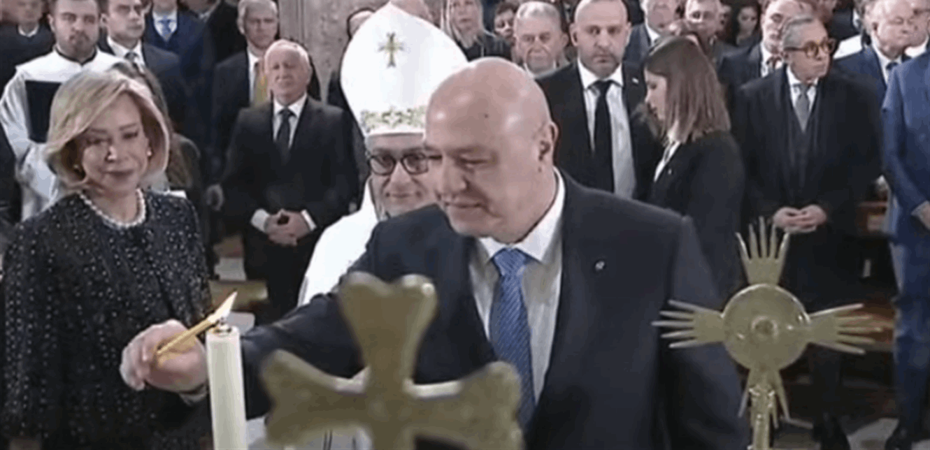 وحضر الاحتفال عدد من السياسيين والسفراء، وقد دخل عون إلى الكنيسة على وقع قرع الأجراس.