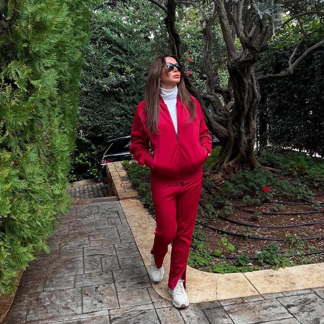 وأطلت كوليت بملابس رياضية وبرشاقة لافتة في حديقة منزلها.