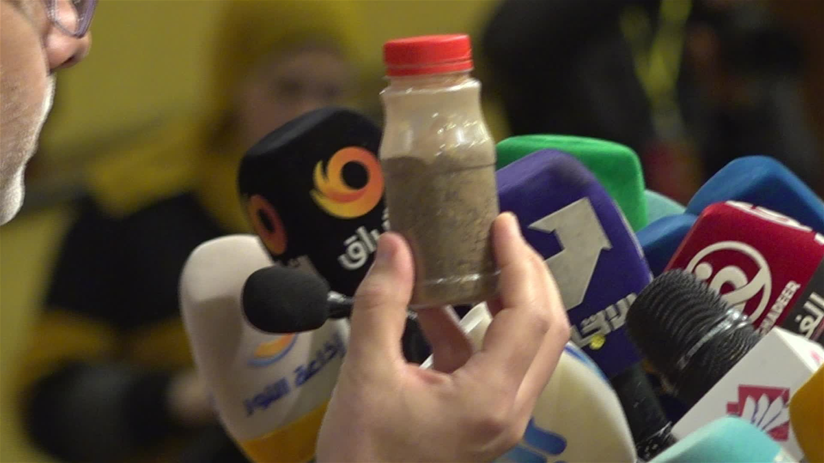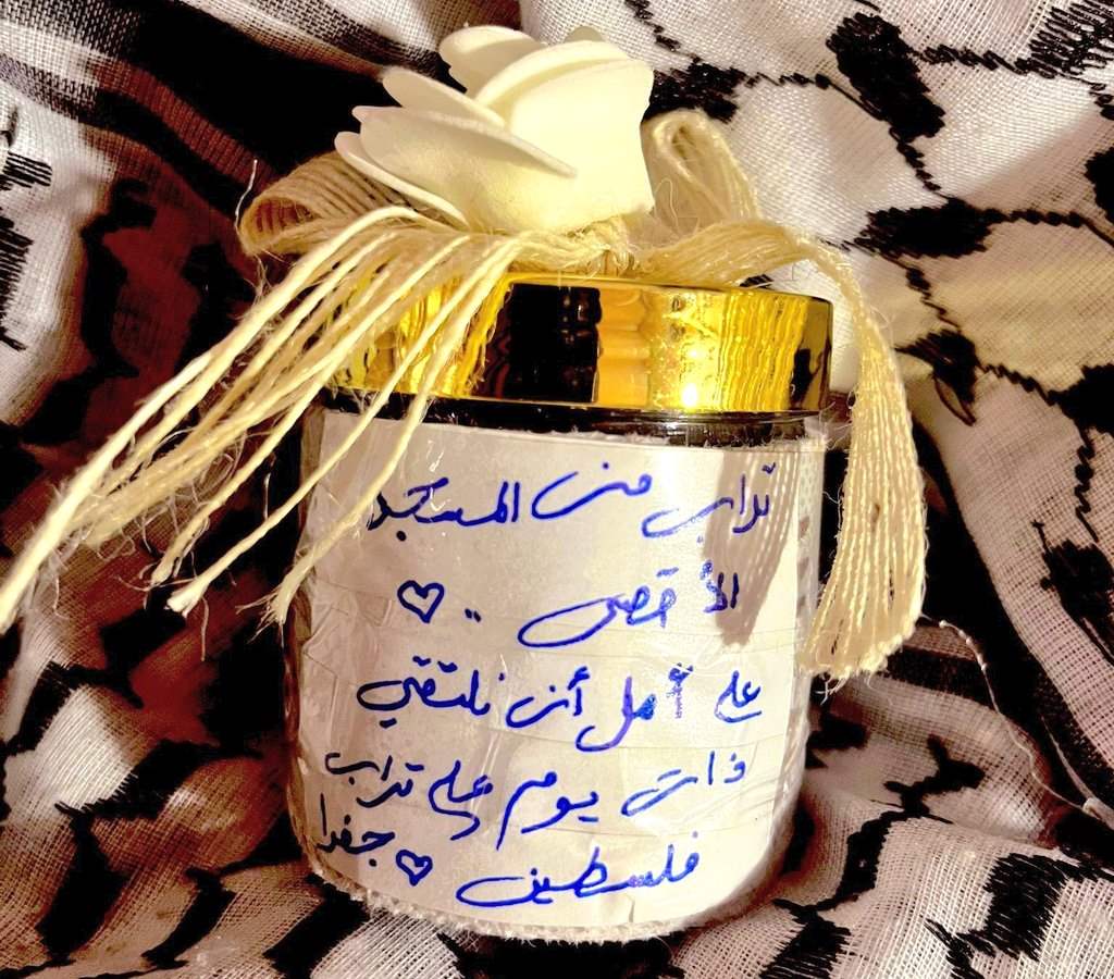 وقالت القناة إنَّ هذه القارورة تحتوي على تراب المسجد الأقصى، وقد جرى إحضارُها خصيصاً لتخاوي التراب الذي سيوارى جثمان نصرالله به، يوم غدٍ الأحد.