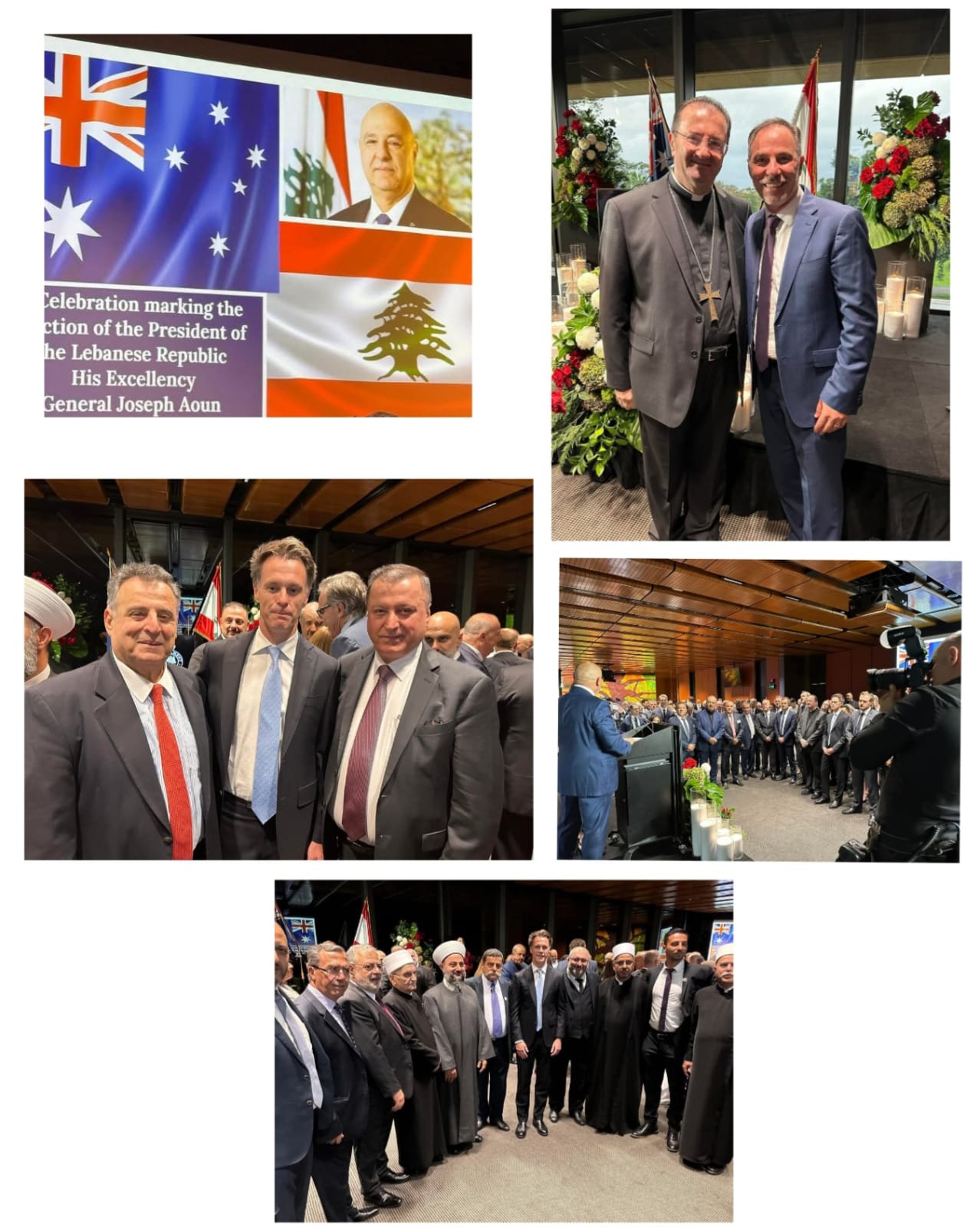 اقيم في برلمان ولاية نيوساوث ويلز في سيدني إحتفال لمناسبة إنتخاب العماد جوزيف عون رئيساً للجمهورية وتشكيل حكومة برئاسة القاضي نواف سلام، برعاية راعي الأبرشية المارونية في أستراليا ونيوزيلندا وأوقيانيا المطران أنطوان-شربل طربيه وحضوره، بالتعاون مع لجنة أصدقاء لبنان البرلمانية ولجنة الصداقة اللبنانية الأسترالية.