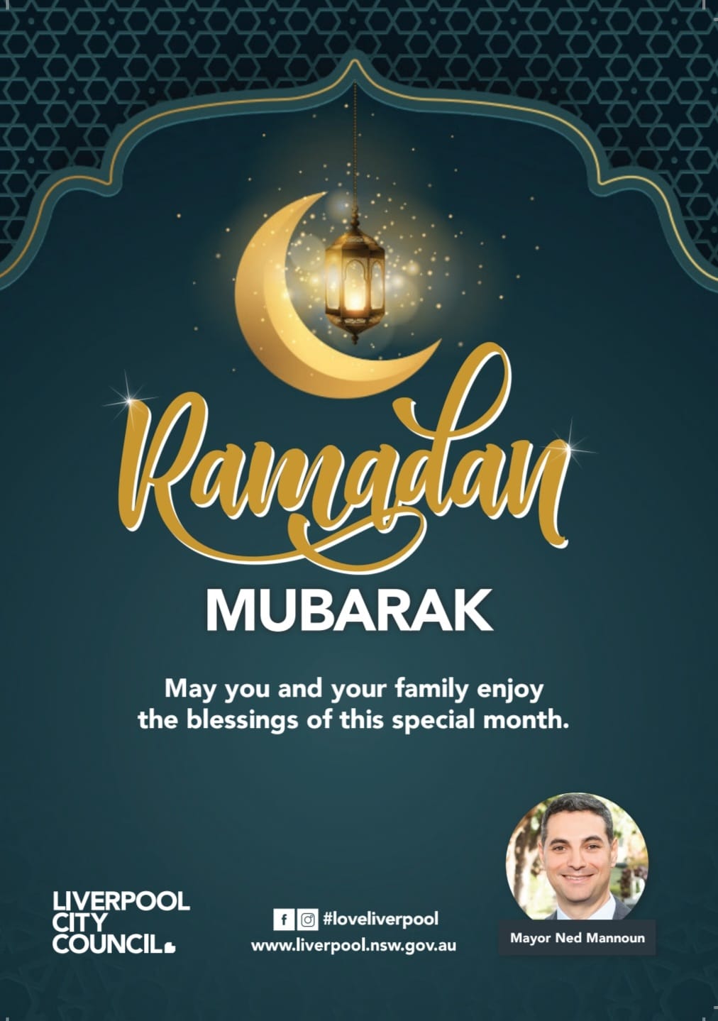 هنأ رئيس بلدية ليفربول ناد منون الجالية العربية عموماً والإسلامية خصوصاً بحلول شهر رمضان المبارك راجياً من الله العليّ القدير أن يكون هذا الشهر الفضيل شهر الرحمة والمحبة والتسامح وأن يعم السلام العالم أجمع..