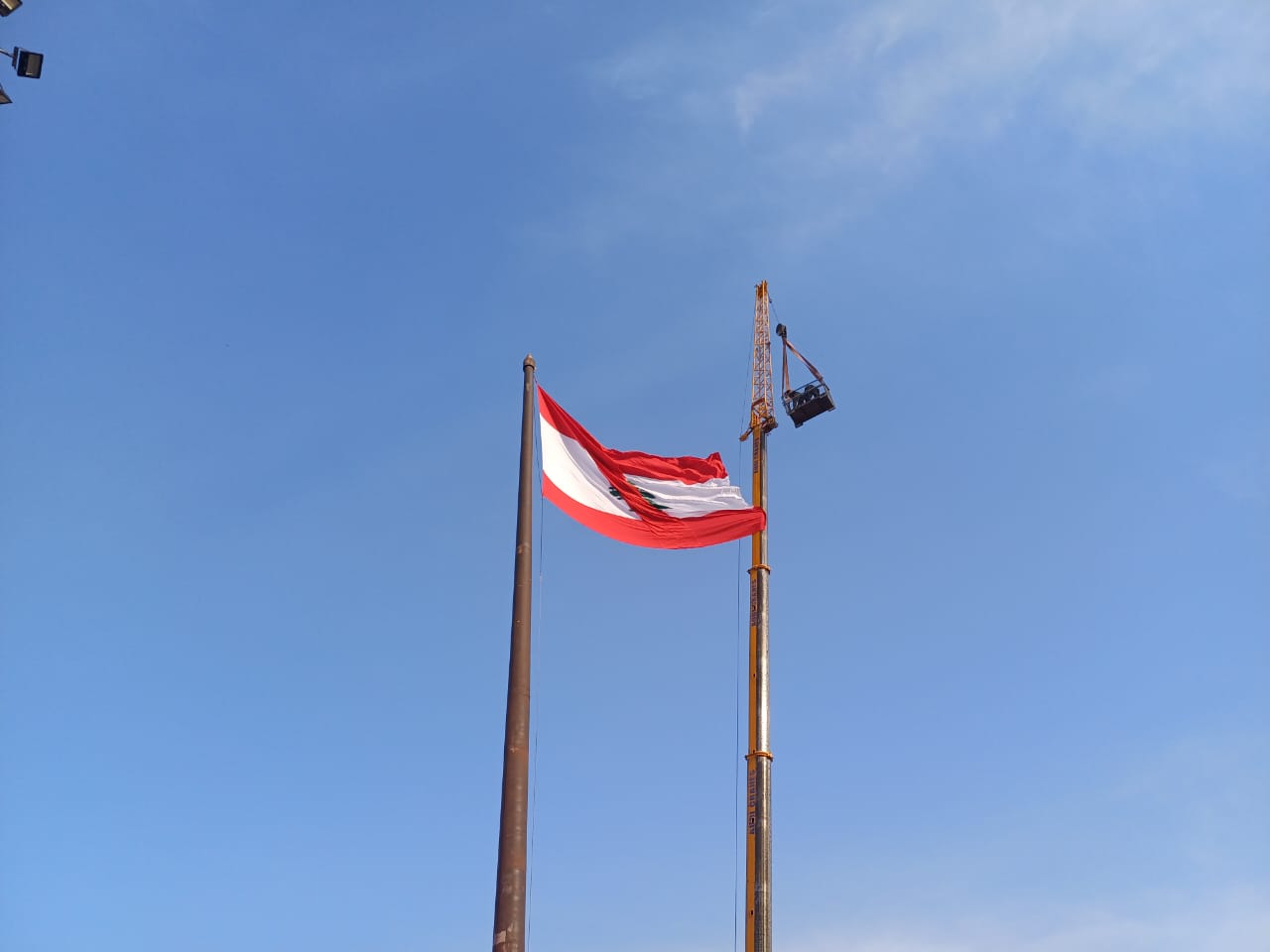 تم رفع العلم اللبناني في ساحة الشهداء، وسط بيروت، ولكن “مشطوباً” هذه المرة.