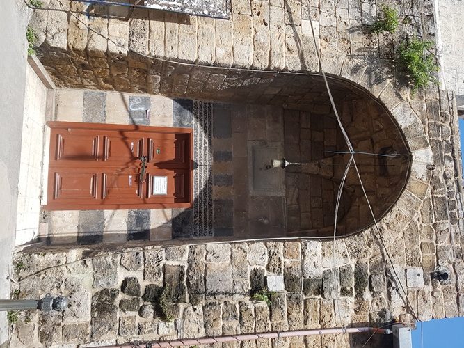 يؤدي المدخل إلى ممر يستخدم أيضا للوضوء، ويعود بناء المدخل والممر للعام 1475، يؤدي هذا الممر إلى قاعة الصلاة المغطاة بالعقود وبقبة في وسطها. يتوسط جدار القبلة منبر (خشبي). أما المحراب فقد بني بطريقة ملتوية ليتوافق مع اتجاه القبلة.