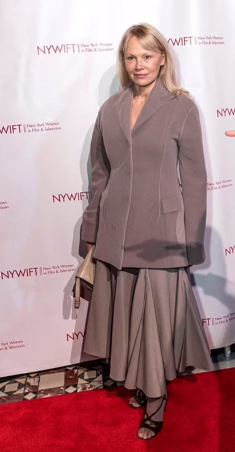 لفتت النجمة باميلا أندرسون أنظار الجمهور بعد ظهورها من دون مكياج على السجادة الحمراء خلال حضورها حفل توزيع جوائز نيويورك للنساء في السينما والتلفزيون يوم الأربعاء الماضي.