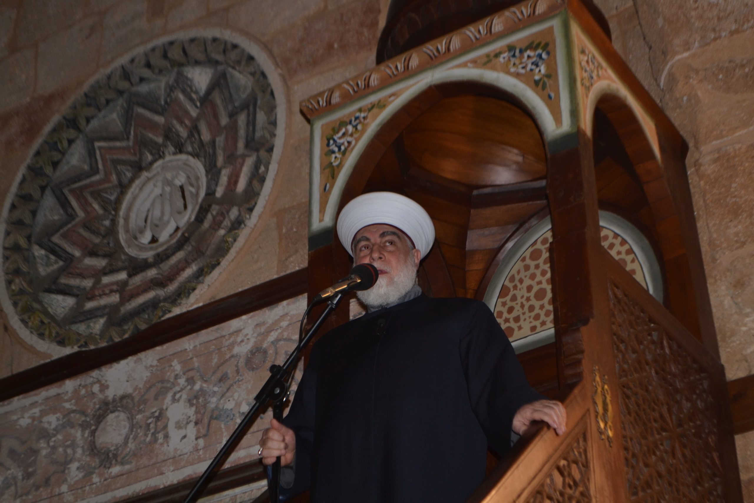 أم مفتي طرابلس الشمال الشيخ محمد طارق إمام أمام المصلين في صلاة العيد في المسجد المنصوري الكبير .