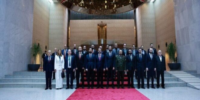 وفي بداية مراسم الإعلان عن تشكيلة الحكومة، قال الشرع: “نشهد ميلاد مرحلة جديدة للمضي نحو المستقبل”. وأضاف أن “الحكومة الجديدة تسعى لإعادة بناء مؤسسات الدولة”.