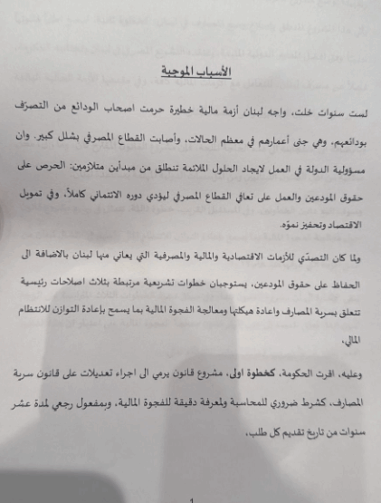 اقر مجلس الوزراء الأسباب الموجبة لمشروع قانون إعادة تنظيم المصارف.