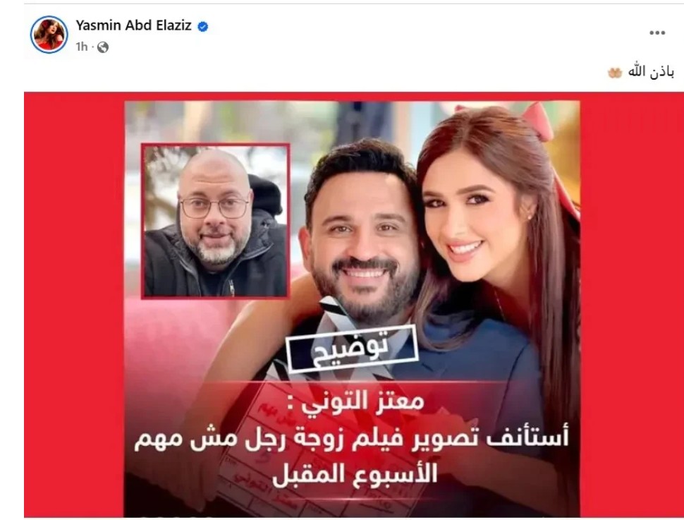 ونشرت ياسمين عبر حسابها الرسمي في “فيسبوك”، توضيحاً حاسماً من المخرج معتز التوني يفيد بأن تصوير الفيلم لم يتم تأجيله، وأنه سيُستأنف الأسبوع المقبل كما كان مقرراً.
