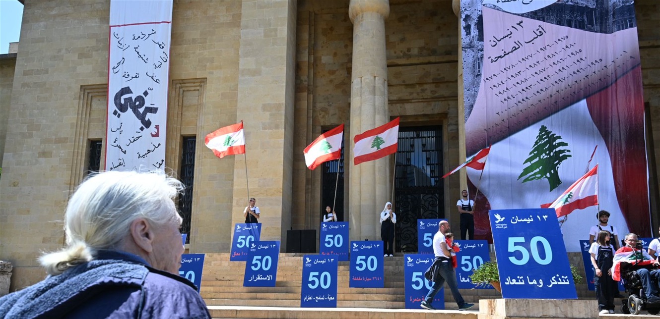 أضاءت وزارة الثقافة – المديرية العامة للاثار، واجهة المتحف الوطني بألوان العلم اللبناني لثلاثة ليال متتالية، لمناسبة مرور 50 عاما على ذكرى الحرب اللبنانية الأليمة في العام 1975.