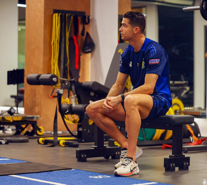 وأظهرت الصورة اللاعب وهو يجلس في صالة الألعاب الرياضية الخاصة بالنادي، مع تركيز واضح على شيء ما.