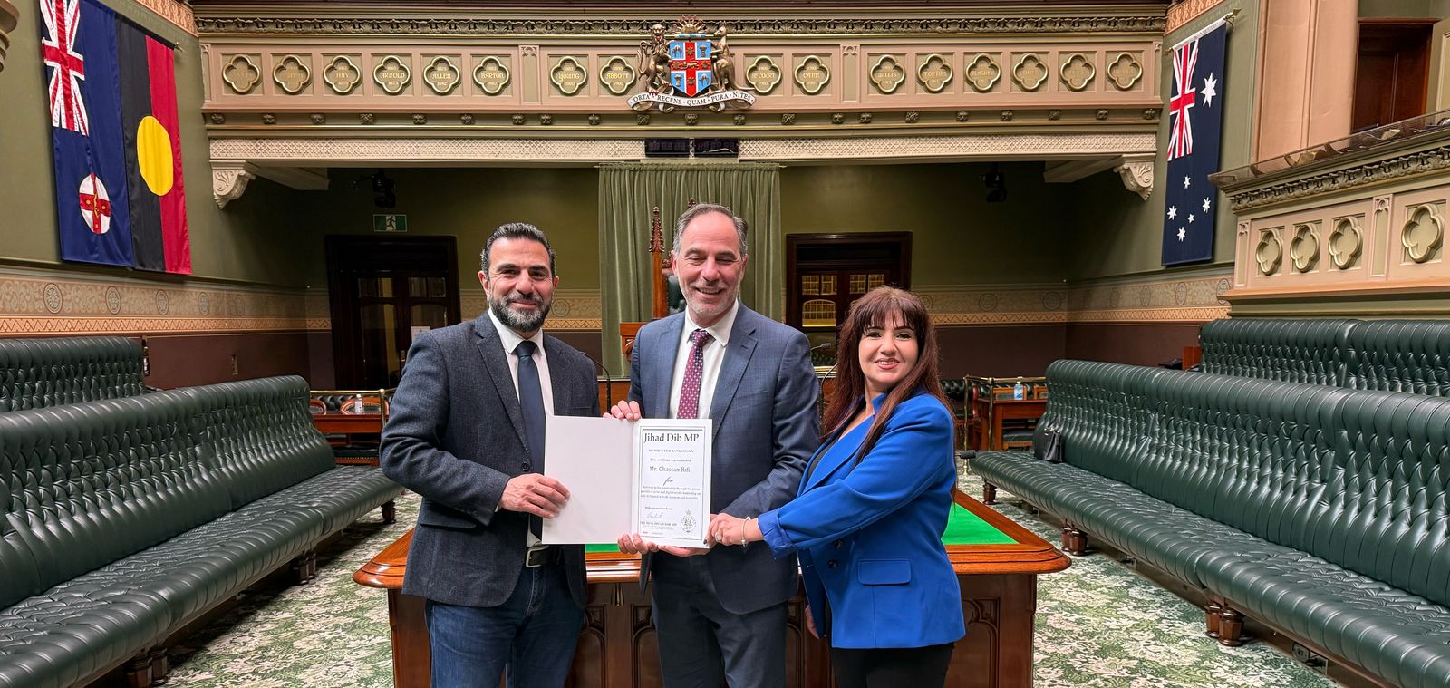 كرّم وزير الشباب والخدمات والطوارئ في حكومة نيو ساوث ويلز في أستراليا جهاد ديب، نائب نقيب محرري الصحافة اللبنانية ورئيس تحرير جريدة “سفير الشمال”، الصحافي غسان ريفي، خلال زيارته إلى أستراليا بدعوة من الإتحاد الفيدرالي الأسترالي للمجالس الإسلامية (AFIC).