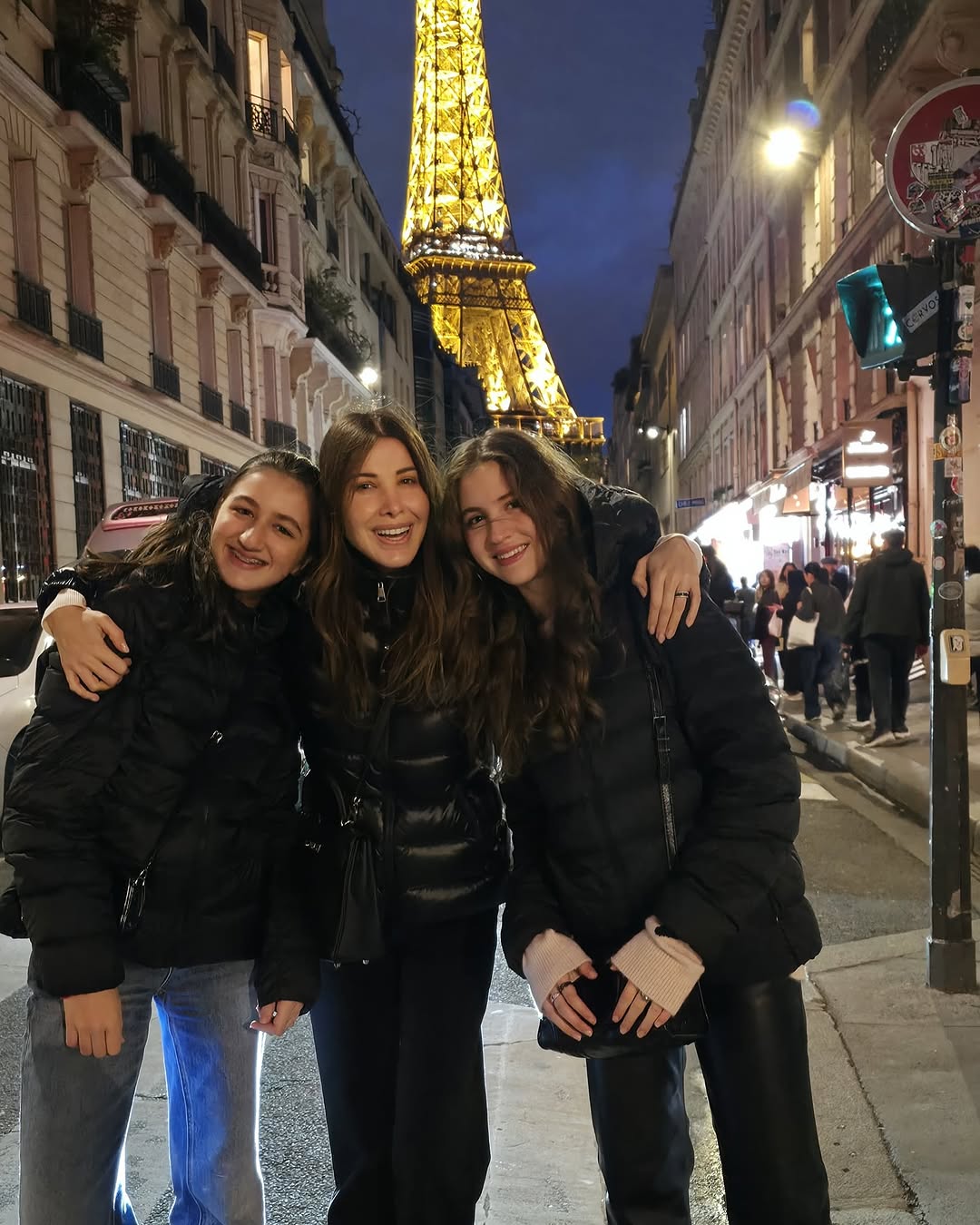 وأطلت نانسي برفقة زوجها طبيب الأسنان الدكتور فادي الهاشم وبناتها ميلا وايلا وليا وهم يستمتعون بوقتهم في شوارع باريس.