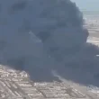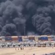 وأظهرت لقطات ملتقطة من الجو لم تتمكن وكالة “فرانس برس” من التحقق من صحتها، سحبا من الدخان الأسود الكثيف تتصاعد من ثلاثة مواقع في الميناء.