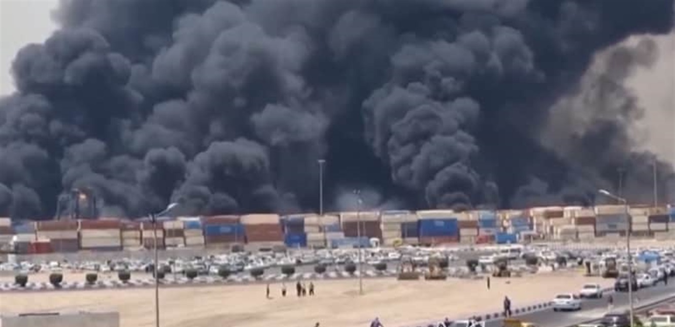 وبدت حاويات أخرى قريبة محطمة ومتمددة بسبب الانفجار والحريق الشديد الذي أعقبه.