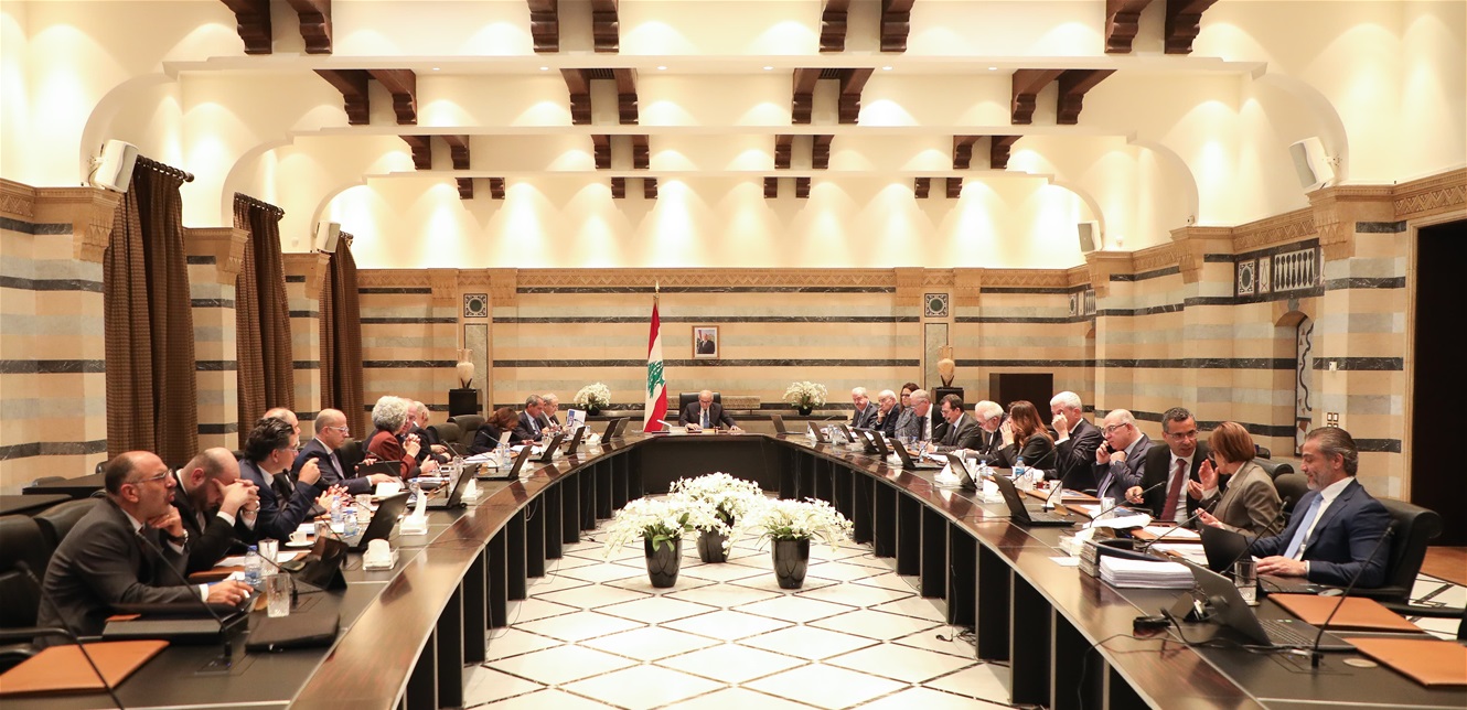 يتراس رئيس مجلس الوزراء الدكتور نواف سلام في هذه الأثناء جلسة لمجلس الوزراء يحضرها نائب رئيس الحكومة الدكتور طارق متري ووزراء: المالية ياسين جابر، الدفاع اللواء ميشال منسى، الطاقة والمياه جو صدي، السياحة لورا الخازن، الشؤون الاجتماعية حنين السيد، الخارجية والمغتربين يوسف رجي، الاقتصاد والتجارة عامر البساط، المهجرين وشؤون تكنولوجيا المعلومات والذكاء الاصطناعي كمال شحادة، الداخلية والبلديات العميد احمد الحجار، العدل عادل نصار، الاتصالات شارل الحاج، الشباب والرياضة نورا بايراقداريان، التربية والتعليم العالي ريما كرامي، الصناعة دجو عيس الخوري، شؤون التنمية الادارية فادي مكي، العمل محمد حيدر، الاشغال العامة والنقل فايز رسامني، الزراعة نزار هاني، الاعلام بول مرقص، البيئة تمارا الزين والصحة العامة ركان ناصر الدين.