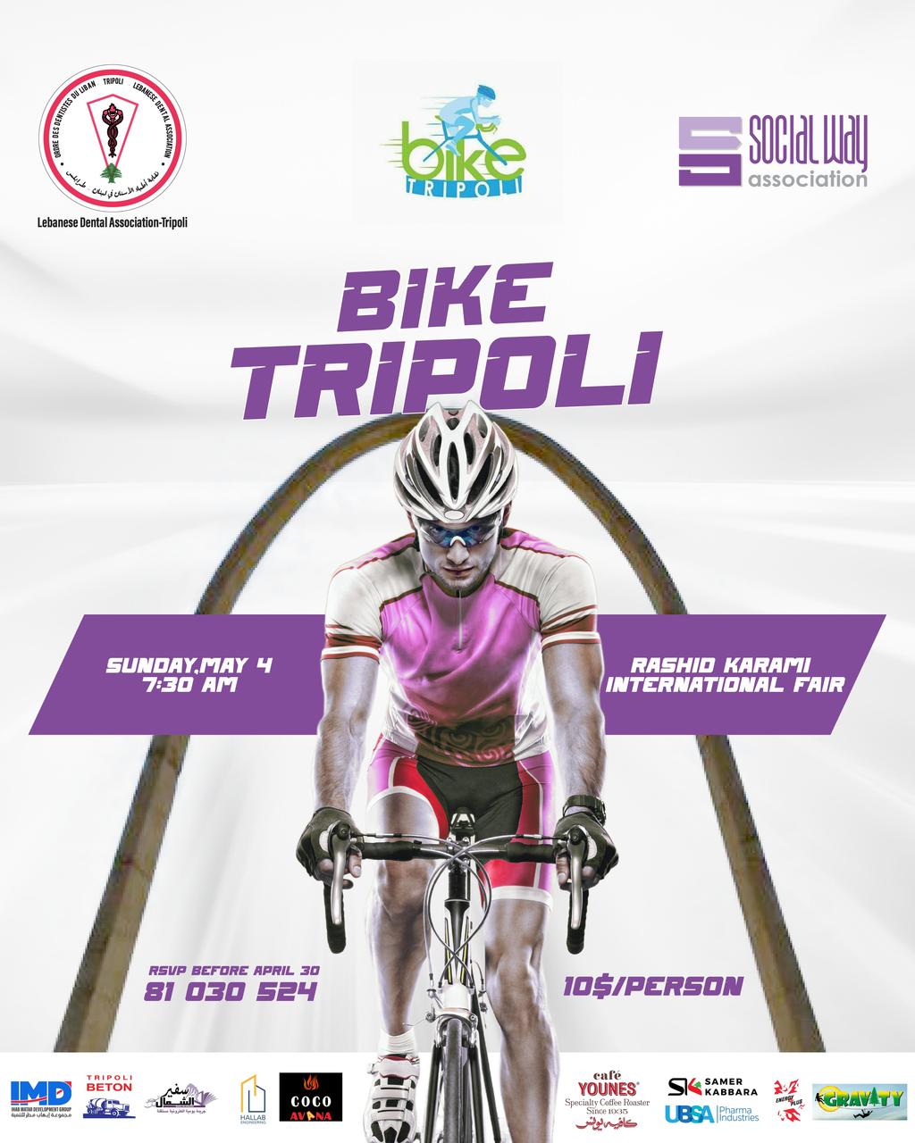 تطل ثقافة ركوب الدراجة من جديد يوم غد الأحد من طرابلس عبر جمعية “سوشيل واي” التي تنظم بايك طرابلس بالتعاون مع نقابة أطباء الأسنان، بمشاركة حشد من الأطباء وناشطين ودراجين ومهتمين، وذلك في معرض رشيد كرامي الدولي إبتداء من الساعة الثامنة صباحا.