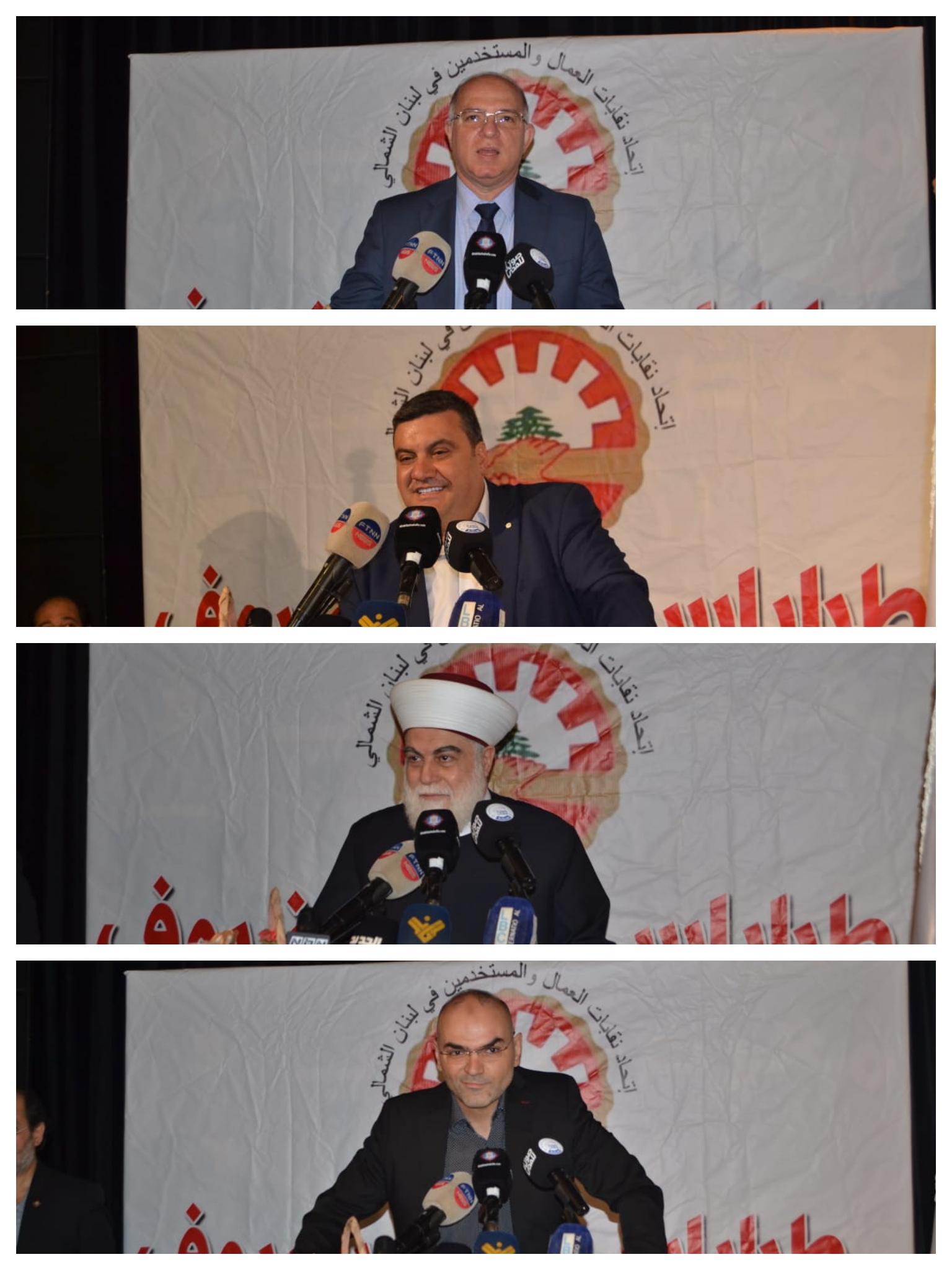بدعوة من الاتحاد العمالي العام واتحاد نقابات العمال للمستخدمين في لبنان الشمالي واتحادات النقل البري وبرعاية وزير العمل محمد حيدر اقيم على مسرح الرابطة الثقافية الاحتفال المركزي لمناسبة الاول من ايار عيد العمل والعمال العالمي وذلك بحضور مفتي طرابلس والشمال الشيخ محمد طارق امام والمكران يوسف سويف والنائبين جميل عبود وحيدر ناصر وممثلين عن النائبين فيصل كرامي واشرف ريفي رئيس بلديه طرابلس رياض يمق ورئيس قطاع العمال في تيار العزم النقيب غسان يكت و رئيس غرفة طرابس والشمال توفيق دبوسي ورئيس الرابطة الثقافيه رامز الفري ومسؤول المؤتمر الشعبي في طرابلس عبد الناصر المصري وممثلين عن النقابات والفصائل الفلسطينية والنقابات العمالية في طرابلس والشمال.