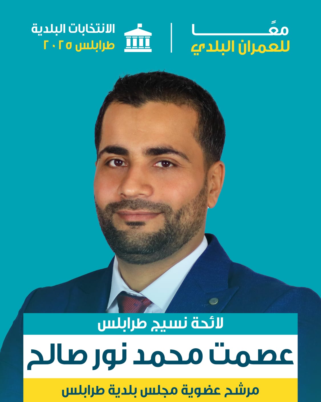 اهلي اصدقائي احبتي انا عصمت محمد نور صالح ابن باب التبانة منطقتي يلي كبرت فيها وعشنا مع ناسها واهلها الطيبين قررت الترشح لعضوية المجلس البلدي في طرابلس مع نخبة من خيرة شباب وقامات مدينتنا الحبيبة طرابلس لنكون معا صوت الناس ونبض المدينة وصانعين لمستقبل أفضل طرابلس بتستاهل ونحنا قدا أن شاء الله