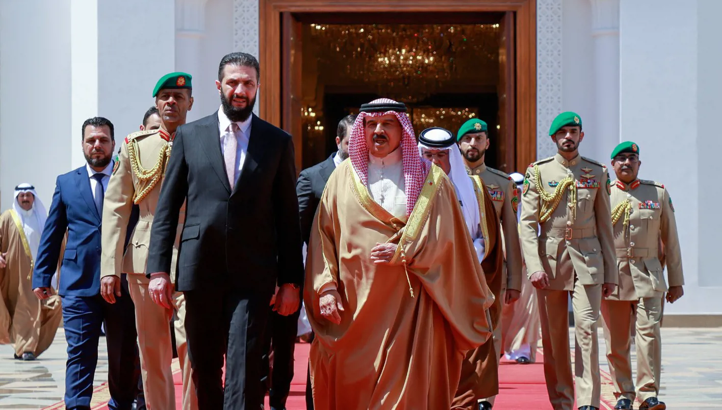 استقبل العاهل البحريني الملك حمد بن عيسى آل خليفة اليوم في المنامة الرئيس السوري أحمد الشرع والوفد المرافق، الذي يقوم بزيارة رسمية إلى مملكة البحرين.