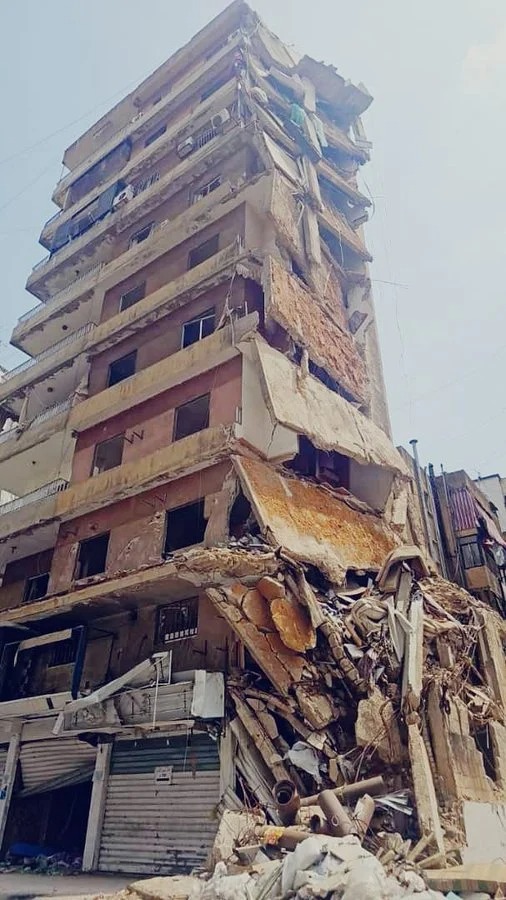 أدى انهيار جزء من مبنى في الرويس بالضاحية الجنوبية إلى تضرر عدد من السيارات.