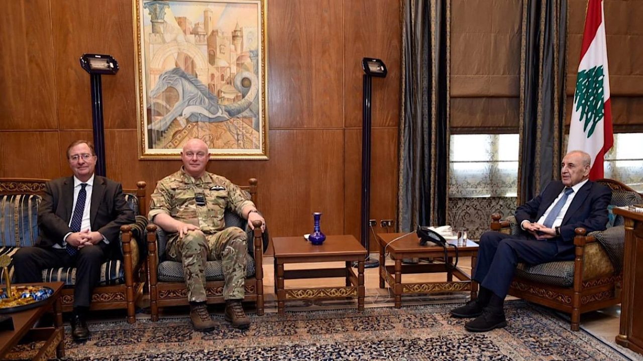 كما تابع رئيس المجلس تطورات الأوضاع السياسية والميدانية في لبنان والمنطقة خلال استقباله نائب رئيس هيئة أركان الدفاع البريطانية المارشال هارفي سميث والوفد المرافق، بحضور السفير البريطاني في لبنان هاميش كاول والمستشار الإعلامي لبري علي حمدان .