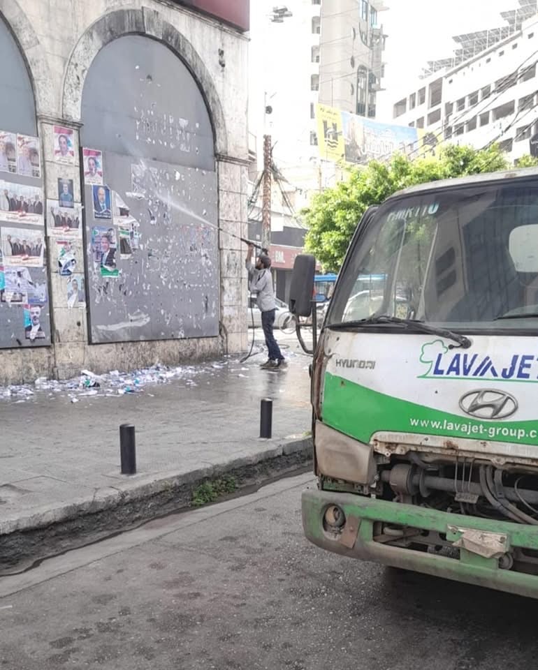 واصل عمال شركة “لافاجيت” الملتزمة جمع نفايات مدن الفيحاء، بالتعاون مع بلدية طرابلس، حملة ازالة صور المرشحين واللافتات من الشوارع والاملاك العامة، لاسيما في الشوارع الرئيسية في طرابلس، بعد انتهاء الحملات الانتخابية البلدية والاختيارية والاحتفالات بالفوز.