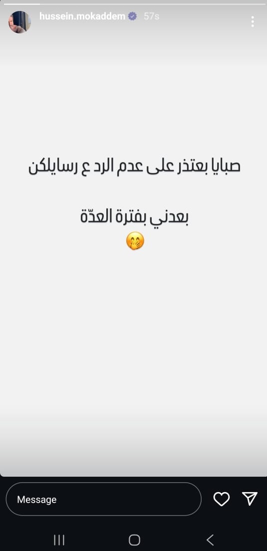 قال الممثل حسين مقدم عبر منشور توجّه فيه إلى “الصبايا” إنّه يعتذر على عدم الردّ على رسائلهن.