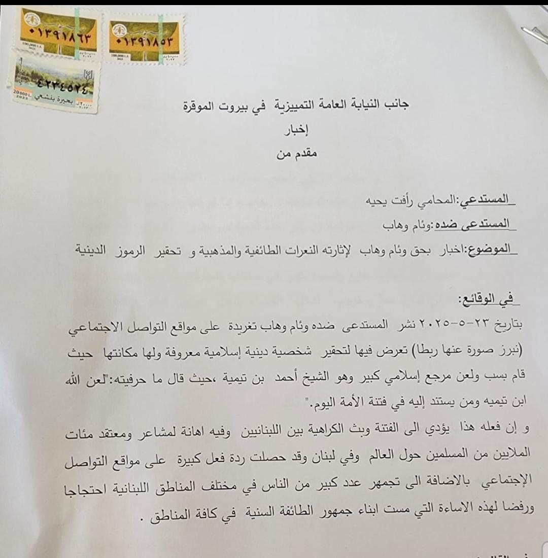 أما عن رد الفعل المشبوه على مواقع التواصل الاجتماعي والذي يدّعي فيه مقدم الاخبار بحق رئيس حزب التوحيد العربي وئام وهاب؛ فهؤلاء هم مجموعة من الداعشيين والتكفيريين أغلبيتهم من خريجي السجون والذين كانت تلاحقهم الدولة.