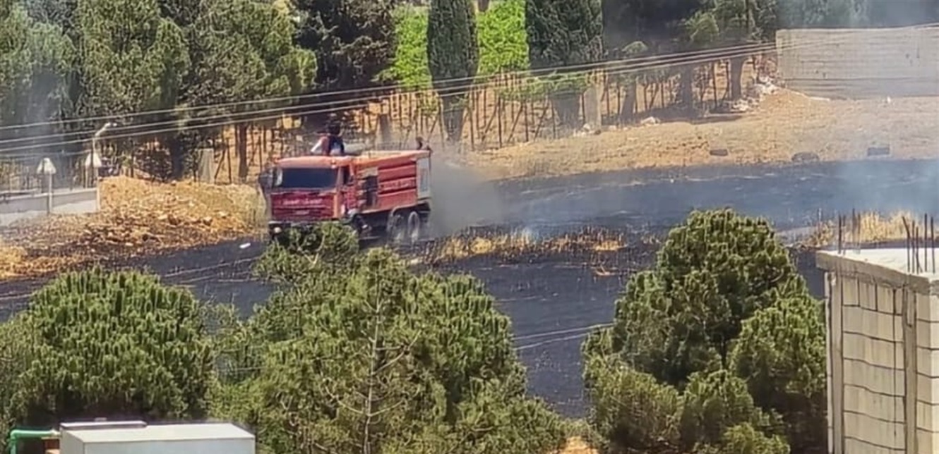 اندلع حريق في أرضٍ مزروعة بالقمح في سهل الطيبة – بعلبك، والتهمت النيران مساحات شاسعة من القمح.