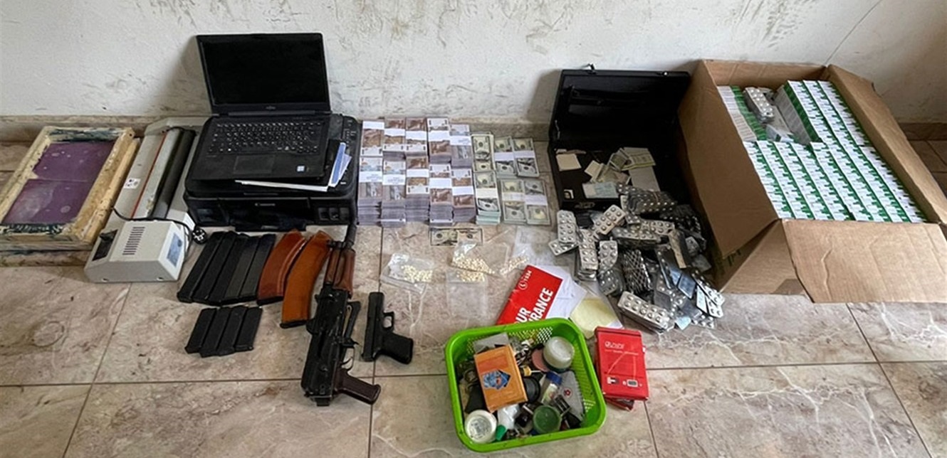 ضُبطت في منزله معدات للتزوير، ومبالغ مالية ومستندات مزورة، وكمية من المخدرات، بالإضافة إلى أعتدة عسكرية وذخائر حربية.