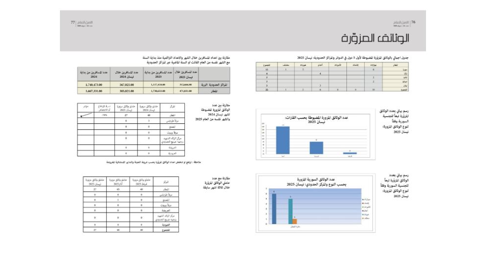 صدر عن مكتب شؤون الإعلام الإحصاءات الشهرية لحالات التزوير التي ضُبطت من قبل عناصر الأمن العام اللبناني في الدوائر والمراكز الحدودية كافة، وفقاً للجداول المرفقة ربطاً.