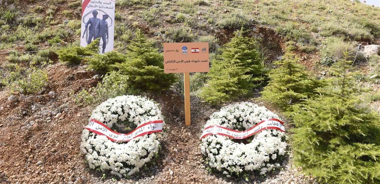 نشكرُ معالي وزير الزراعة الدكتور نزار هاني، وشركة Medicals International، وإدارة محميّة أرزِ الشوف على هذه اللفتةِ الوطنيّةِ، وعلى اعتنائهِم بهذهِ البقعةِ المتأرِّزة التي ترمز إلى عظمة هذا الوطن وتحتضن بدلالاتها أرواح شهداءَ قوى الأمن الداخلي من كلِّ الرُّتَبِ (ضباطًا، ورتباءَ وأفرادًا) منذ تأسيسِها عام 1861. في ختامِ هذه الكلمةِ، أتوجَّهُ بتحيَّةِ تقديرٍ إلى كلَّ الضبّاطِ والعناصرِ، وأعايدهُم جميعًا شبّانًا وشابّاتٍ، وأقولُ لهم لبنانُ يَقوى بإيمانِكم بهِ، ويُعَزُّ بوفائِكم له. كذلكَ أتوجّهُ بتحيّةِ إجلالٍ وإكبارٍ إلى أهالي الشّهداءِ وذويهم، هم مَنْ قدَّموا فِلذاتِ أكبادِهم ليَحيا الوطنُ، نقولُ لهم إنَّ أرواحَ شهدائِنا كجذورِ هذه الأشجارِ صامدةٌ فينا، ونؤكِّدُ لهم أنَّ تضحياتِهم ستظلُّ أمانةً نَحملُها في قلوبِنا وضمائِرِنا، وعهدُهُم علينا بالوفاءِ لهذا الإرثِ العظيمِ. المجدُ والخلودُ لشهدائِنا الأبرار، عاشَت قوى الأمن الداخلي، وعاشَ لبنانُ وطنًا حرًّا سيِّدًا مستقِلًّا.
