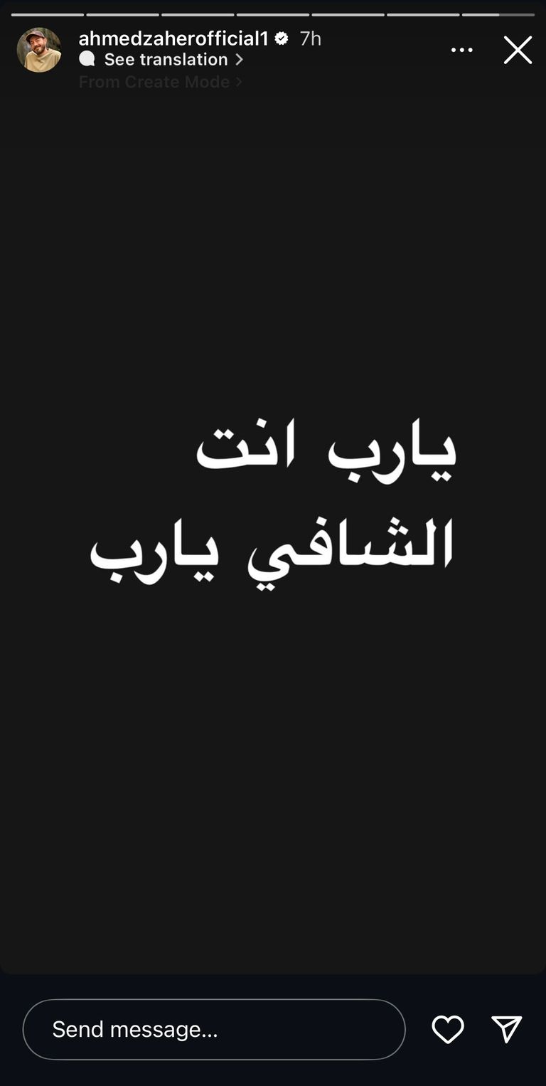وكتب زاهر عبر حسابه قائلا: “يارب أنت الشافي يارب”، ما دفع العديد من المتابعين للتفاعل مع المنشور والدعاء لها بالشفاء العاجل.