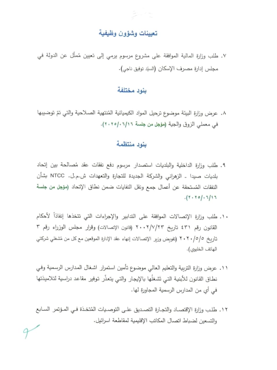 واستغربت مصادر متابعة ادارج البند رقم 10 على جدول أعمال مجلس الوزراء في جلسته يوم الجمعة المقبل. واكدت انه لا يمكن لمجلس الوزراء أن يقرّه لاعتبارات عدة اهمها انه لا يمكن لوزير الاتصالات أن يطبق القانون 431 حاليا بموجب عدة أحكام مبرمة صادرة عن مجلس شورى الدولة تعتبر القانون غير نافذ، على خلفية عدم وجود هيئة ناظمة للاتصالات (TRA)، وكذلك لا وجود لشركة “ليبان تيليكوم”.
