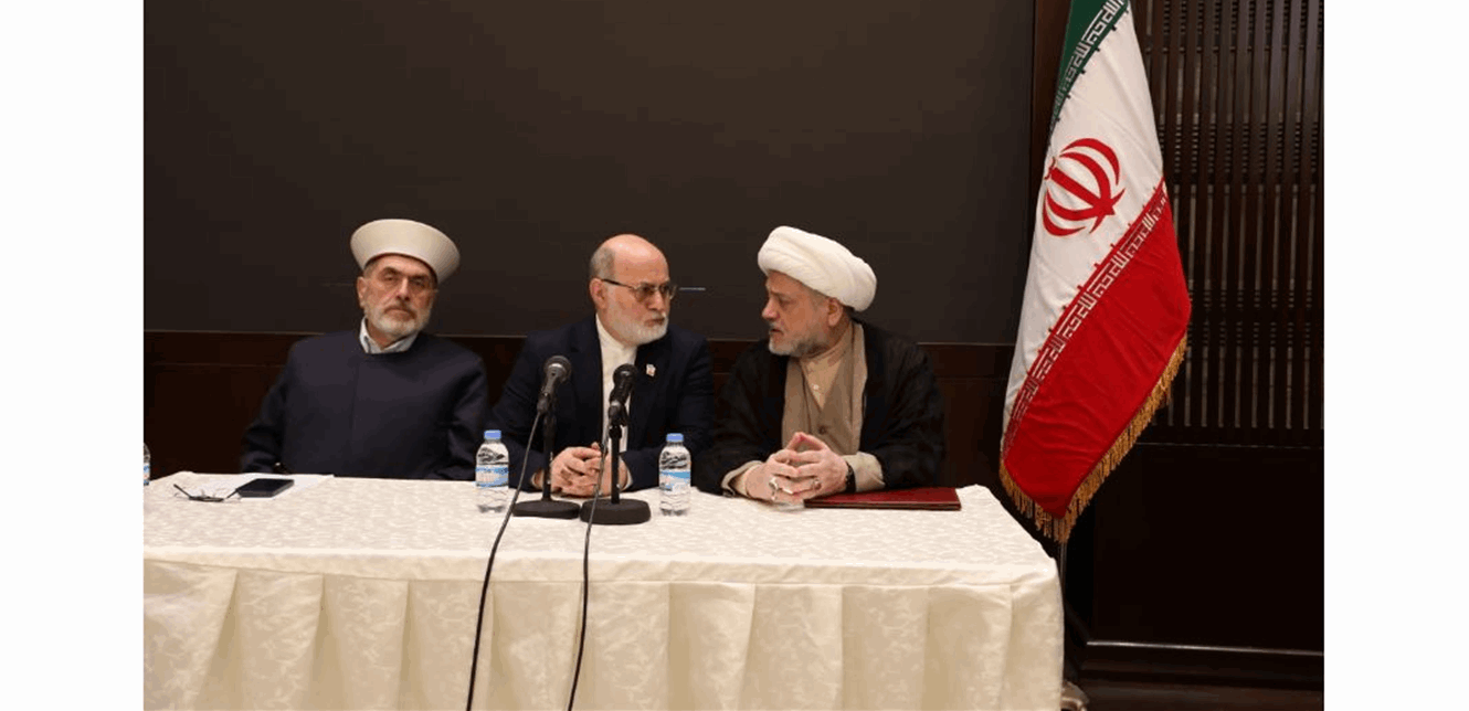 ولفت الشيخ مصطفى ملص في كلمته الى اننا في “التجمع” “نتشرف بالحضور الى صرح سفارة الجمهورية الإسلامية الإيرانية، لنعلن من على منبره وقوفنا صفا واحدا خلف قيادتها الرشيدة المتمثلة بالسيد علي الخامنئي دام ظله في مواجهة العدوان الذي تتعرض له الجمهورية وفي مواجهة الغطرسة الأميركية والصهيونية، ولنؤكد أن هذه الجمهورية العزيزة هي أمل الإنسانية وأمل الأحرار في العالم، وهي التي سيتحقق على يد مشاهديها وقيادتها النصر المؤزر على قوى الطغيان العالمي”.