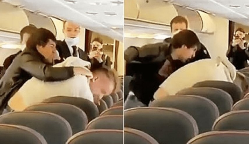 وخلال التدخل الأمني، بصقت على إحدى الراكبات ثلاث مرات، وواصلت الصراخ والشتائم، إلى أن سقطت على الأرض وادعت عدم قدرتها على التنفس، ثم بدأت في الركل والصراخ وهي مقيدة، وقال أحد الركاب خلال المشهد: “هل يمكن لأحد أن يتدخل؟”، في تعبير عن حالة الارتباك التي سادت الطائرة.