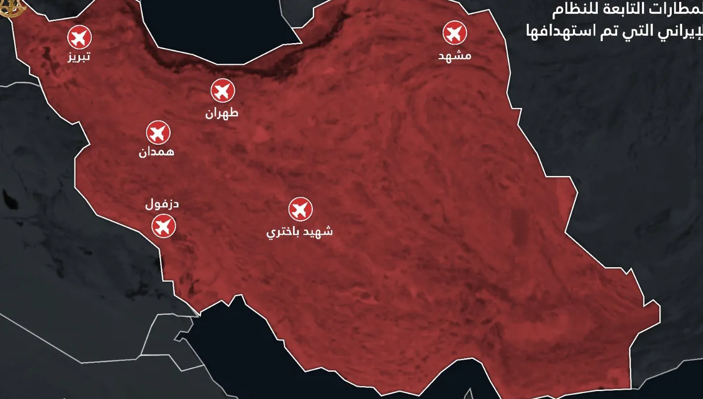 أعلن الجيش الإسرائيلي أنّه “هاجم ستة مطارات تابعة للنظام الإيراني في غرب إيران وشرقها ووسطها”.