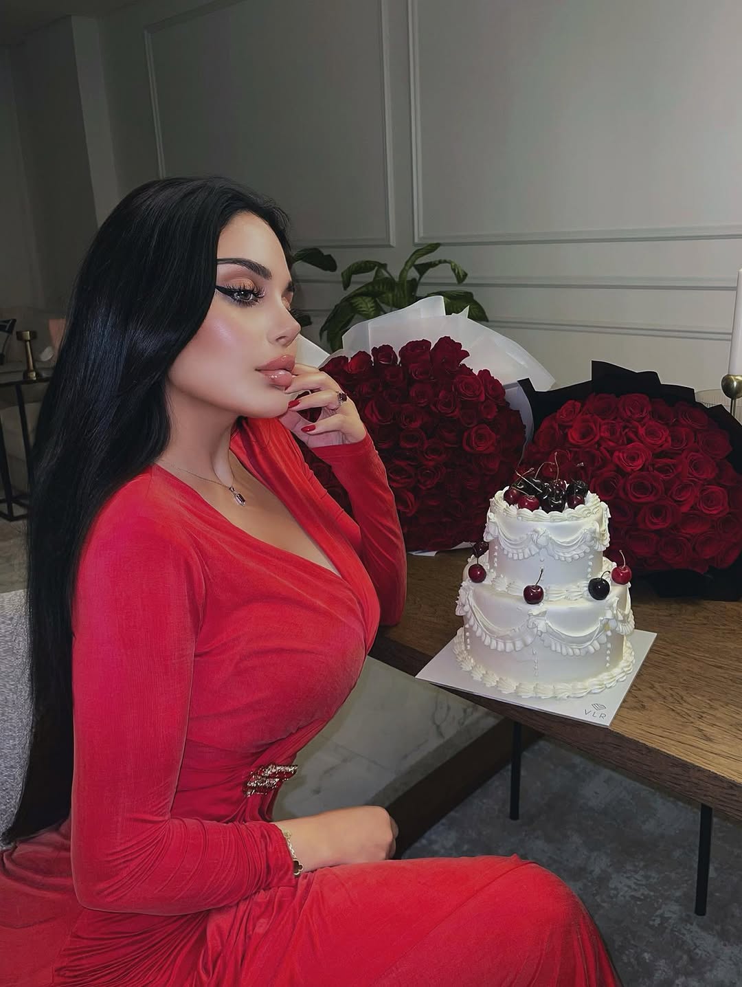 ونشرت زينب صورا عبر حسابها الخاص على تطبيق انستغرام، أطلت فيها بفستان أحمر ضيق وإلى جانبها قالب حلوى.