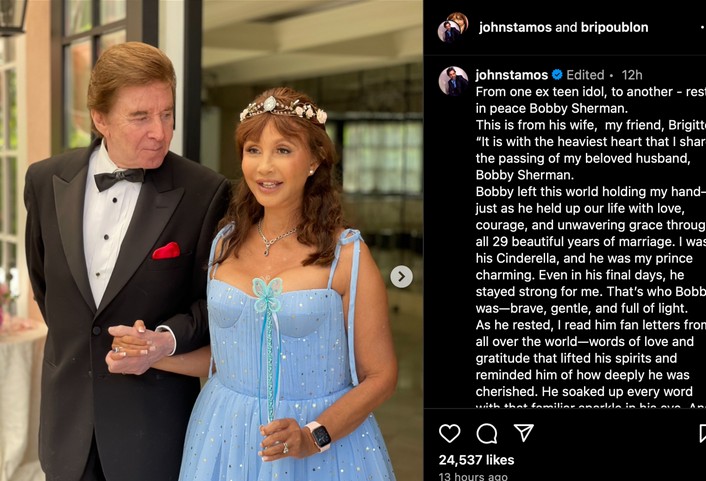 وقالت أرملته في بيان مؤثر: “رحل زوجي الحبيب بوبي وهو ممسك بيدي، كما عاش طوال 29 عاما من زواجنا بحب وثبات ورحمة لا تتزعزع. كنت سندريلا حياته، وكان أميري الساحر”.