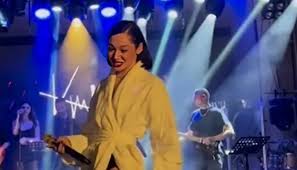 في واقعة غريبة، فاجأت المغنية التركية عليا جمهورها بعدما اضطرت إلى الظهور على خشبة المسرح وهي ترتدي روب الاستحمام فقط عقب فقدان حقيبتها أثناء رحلتها الجوية من إسطنبول إلى منتجع تشيشمي الساحلي غرب تركيا، لتثير موجة تفاعل واسعة.